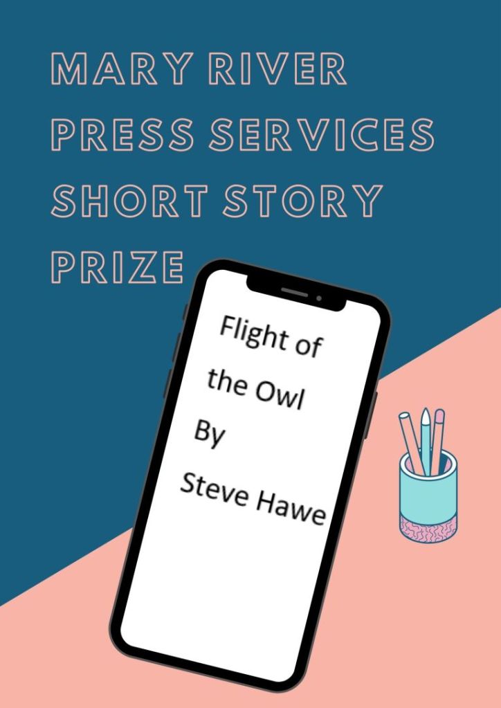 My winning entry in the 2021 Mary River Short Story Contest, grew from scribbled notes penned whilst setting vigil beside my mother’s deathbed. From the heart, it touches on the guilt of an often wayward son, but also the kindness of strangers, and laughter in the face of impending grief. ‘Flight of the Owl’ was longlisted in the 2021 Bridport Prize.